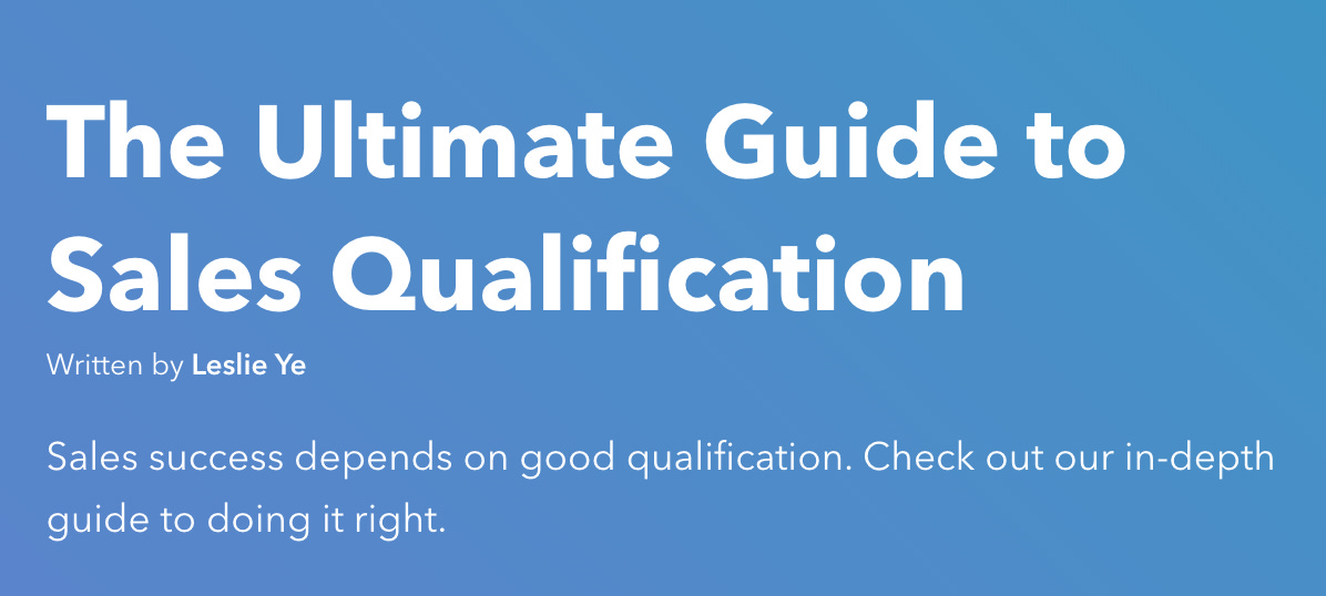 Leslie Ye with Hubspot delivers an unrivaled guide to sales qualification.